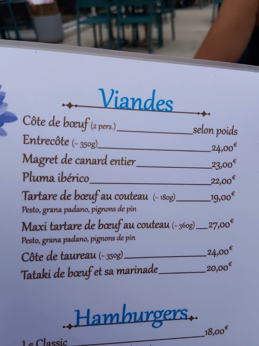 For those looking for a hearty and traditional French dish, the Côté de Taureau is an excellent choice. This bull rib dish is expertly prepared, showcasing the richness and depth of flavors typical of southern France. If you’re in the mood for something lighter yet satisfying, the Salade César is a fresh and flavorful option, with crisp lettuce, savory dressing, and a perfect balance of textures.